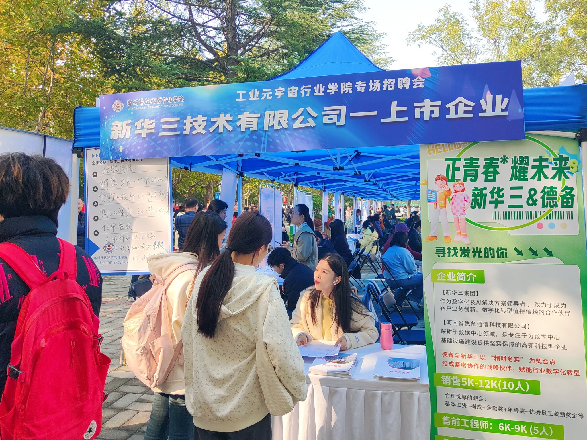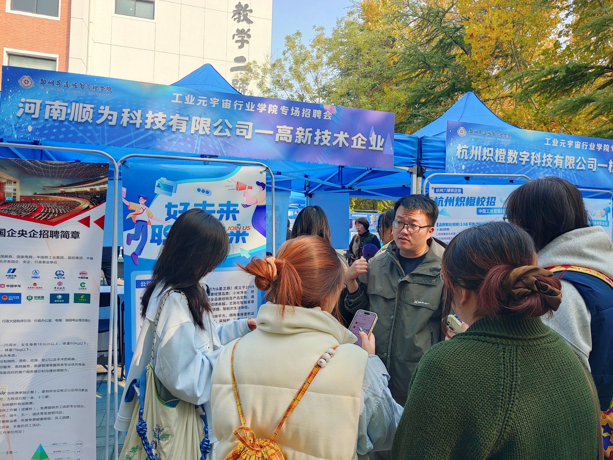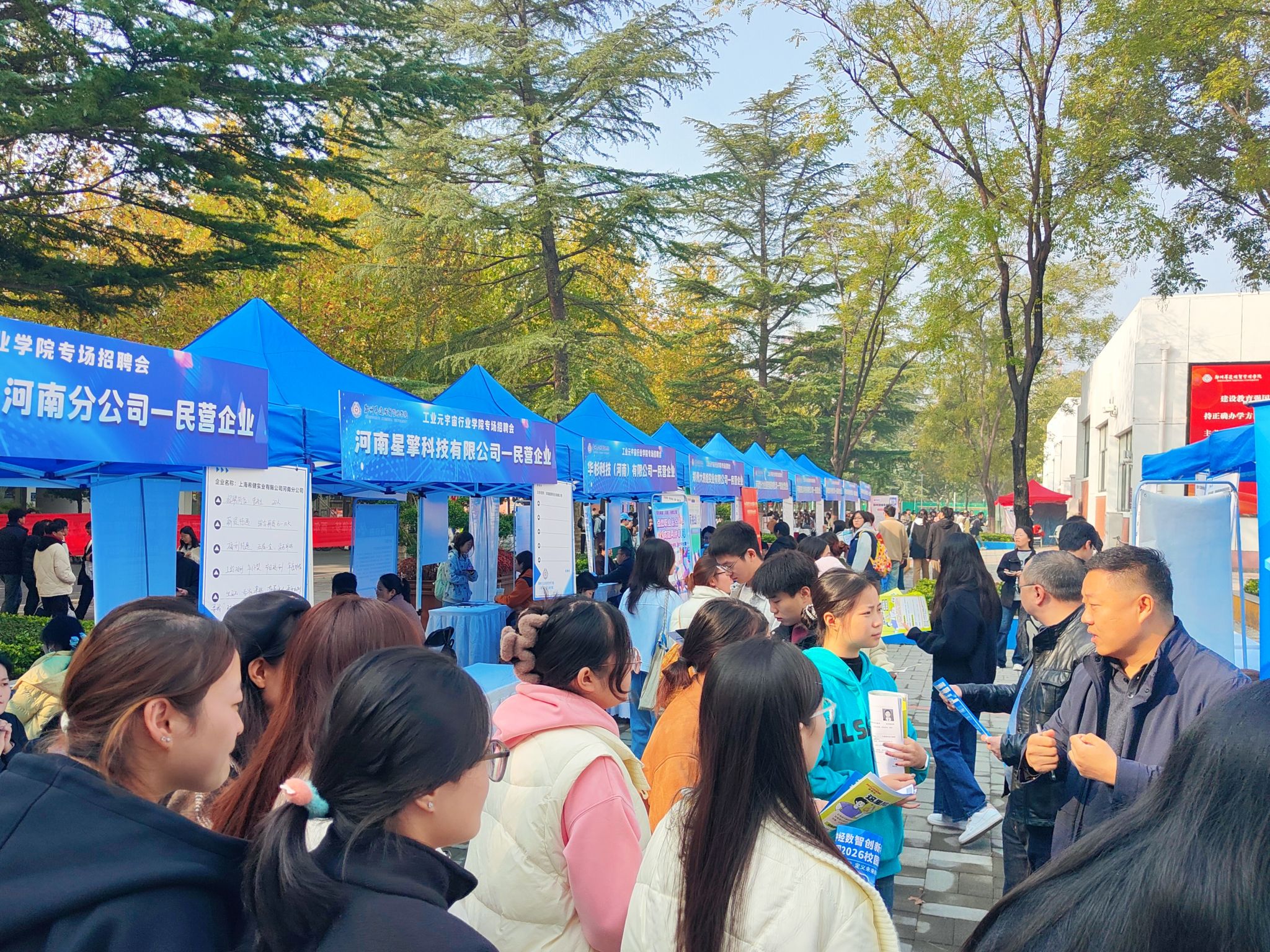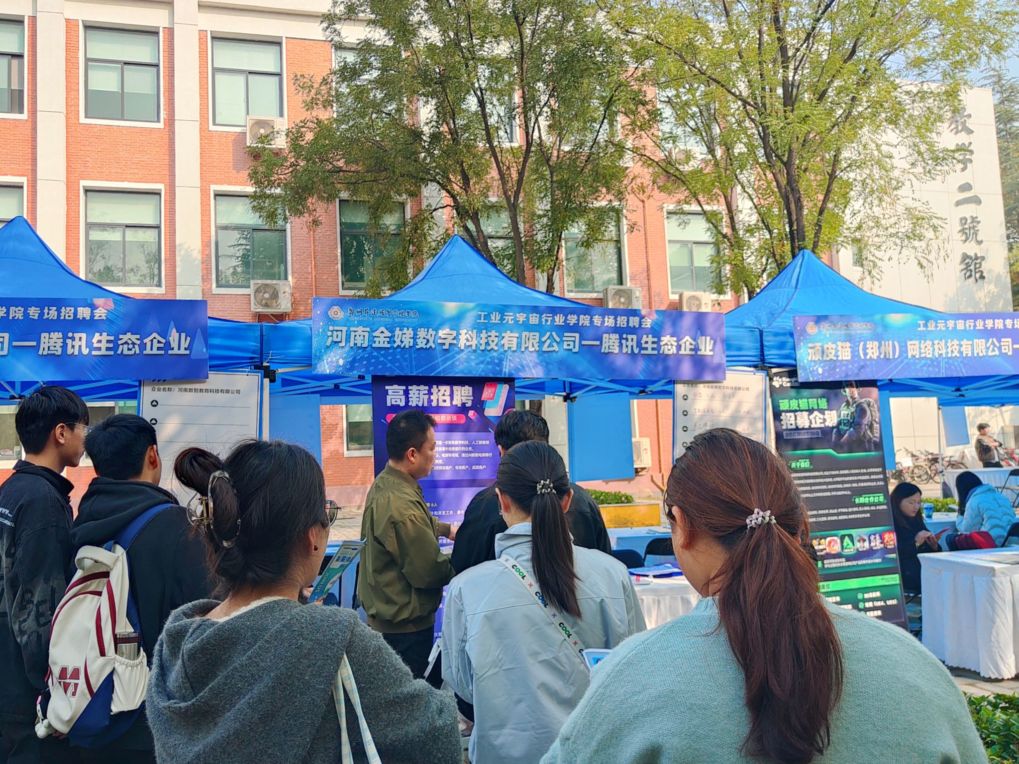 10月30日上午,郑州升达经贸管理学院·工业元宇宙行业学院"2026届毕业生专场招聘会"在学校教学2号楼南侧正式举行。本次招聘会以"精准对接产教需求、助力高质量就业"为核心,汇聚60余家涵盖多领域的优质企业,为2026届毕业生搭建精准就业桥梁,实现校园到职场的"无缝衔接"。